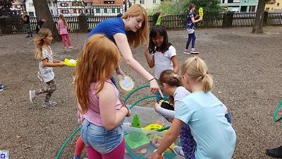 Am 28.06. war die Überraschung groß, denn an diesem Tag bekamen wir Grundschüler für jede Schulklasse eine Kiste mit Pausenhofspielen geschenkt. Diese wurden vom Elternbeirat der Johann-Belzer-Schule spendiert und deshalb auch von unserer Elternbeiratsvorsitzenden Tina Forker und deren Stellvertreterin Christina Morlock überreicht. Gleich nachdem uns die Kisten ausgehändigt wurden, fingen wir an zu spielen. Das hat uns allen sehr viel Spaß gemacht! Es sind ganz tolle Spielsachen in den Kisten, z.B. Hula-Hoop Reifen, Springseile, Gummi-Twist und Fußschleuderbälle. Einen ganz herzlichen Dank an unseren Elternbeirat, die Spielkisten sind spitze und werden inzwischen in jeder Hofpause mit großer Freude von uns benutzt!