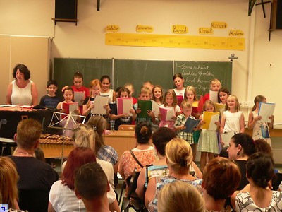 Am Ende des Konzerts stand die Aufführung des Singspiels „Das Geheimnis um den Blumentopf“, verfasst von Claudia Mnich. Hier wurde musikalisch in mehreren Liedern und einigen Textbeiträgen die Geschichte eines Blumentopfs erzählt, der morgens immer wieder kaputt war. Viele wurden verdächtigt, dies getan zu haben – doch letztendlich waren es nur die Katzen. Mit Freude und Begeisterung brachten die Kinder die Lieder zu Gehör. Die Gesamtleitung dieses Sommerkonzerts lag in den Händen der Musiklehrerin Claudia Mnich, die sich wie die Schülerinnen und Schüler über den herzlichen und langen Beifall des Publikums sehr freute.