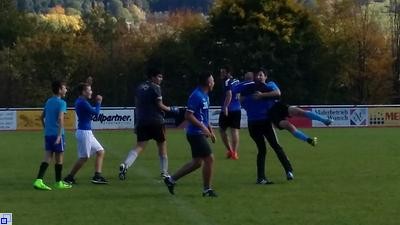 Mit viel körperlichem Einsatz spielten sich die Mannschaften durch das Turnier und zum Schluss stand der verdiente Sieger fest: Mannschaft BLAU gewann im Elfmeterschießen!