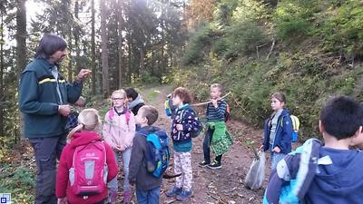 Bei herrlichem Oktoberwetter unternahm die Klasse 2 mit ihrer Klassenlehrerin Sabine Welsch eine Waldführung mit Förster Dietmar Wetzel durch den Weisenbacher Herbstwald.