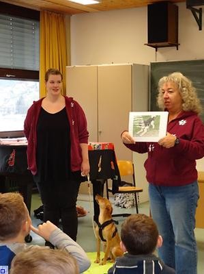 Nicht nur Hunde bekommen eine Belohnung, wenn sie etwas gut gemacht haben. Bei Carmela Schiel bekommen auch die Schüler eine Belohnung für richtige Antworten. Die Hundetrainerin informierte die Kinder auch darüber, was man beachten muss, wenn man einen eigenen Hund haben möchte. Kinder, die noch nie einen Hund gestreichelt haben, durften es dieses Mal wagen. Es war für alle eine sehr interessante Stunde.