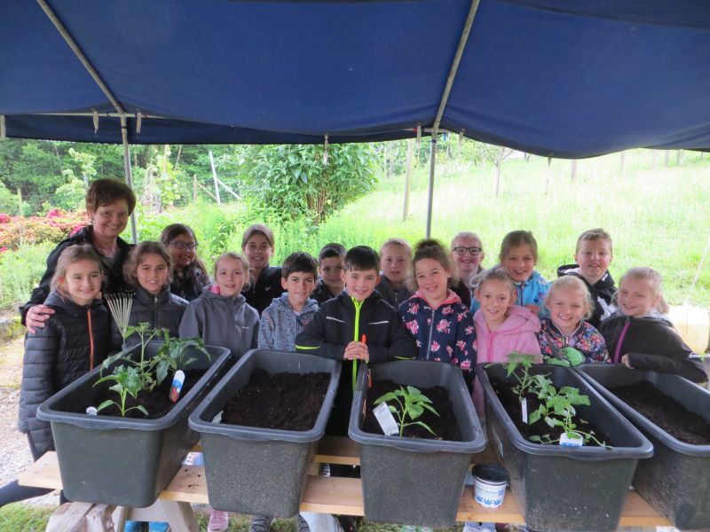 Am Mittwoch 29.05.2019 pflanzten die Weisenbacher Drittklässler mit Unterstützung von Frau Gabauer (OGV) und der Klassenlehrerin Frau Bender Tomaten, Paprika, Kartoffeln, Buschbohnen, Radieschen und Möhren in vom OGV bereitgestellte und mit aufbereiteter Erde befüllte Behälter ein.