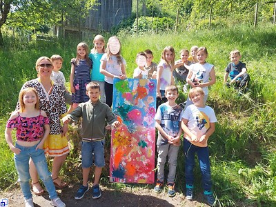 Die Klasse 2 der Johann-Belzer-Schule hat im Rahmen des Kunstunterrichts im Künstlerhaus Rossmeisl ein Gemeinschaftswerk erschaffen. Unter der Anleitung von Künstlerin Senja Haitz hatten die Kinder die Möglichkeit, unterschiedliche Gestaltungstechniken zu erproben, ihre Kreativität einzubringen und ein abstraktes Kunstwerk entstehen zu lassen. Dieses wird nun an einem ausgesuchten Ort im Schulhaus ausgestellt und kann im Folgenden von allen Schulbesuchern bewundert werden.