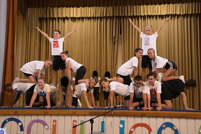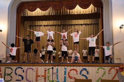 Weiter ging es mit dem von Frau Mnich einstudierten Singspiel, einer Akrobatikaufführung, die wir im Sportunterricht mit unserem Sportlehrer Herrn Harbrecht erarbeitet hatten und bei der wir zeigen konnten, wie sportlich wir sind. Außerdem führten wir einen kurzweiligen Sketch, den wir mit unserer Klassenlehrerin Frau Welsch einstudiert hatten, auf.