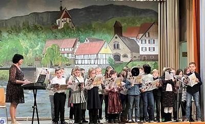 Den Abschluss machte das weihnachtliche Singspiel „Bald ist Heiliger Abend“ aus der Feder der Musiklehrerin Claudia Mnich. Der Schulchor sang mit Begeisterung die Geschichte von einem Mädchen, das es nicht erwarten kann, bis die Bescherung beginnt und alles über das Weihnachtsfest wissen will.