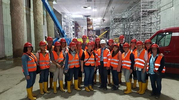 Das aktuelle Kollegium der Johann Belzer-Schule bei der Besichtigung der U-Bahn-Baustelle "Kombilösung" in Karlsruhe...