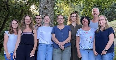 hintere Reihe v.l.: Sekretärin B. Heckele, Schulsozialarbeiter P. Marx, I. Merkel, J. Haitz, V. Harbrecht, B. Bender, E. Heidrich
