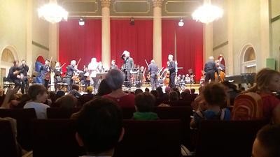 Im Kurhaus angekommen staunten die Schüler über die Massen an Kindergartengruppen und Schulklassen, die die Plätze im Saal schnell füllten. Zu Beginn der Vorstellung wurden die einzelnen Instrumente präsentiert und stellten ihr Können unter Beweis. Als dann die ersten Klänge den Raum füllten, wurde es mucksmäuschenstill im ausverkauften Saal. Die kleinen und großen Zuhörer hatten sichtlich Freude an der musikalischen Untermalung der Geschichte von „Paddington Bär “und hingen gespannt an den Lippen des Erzählers.
