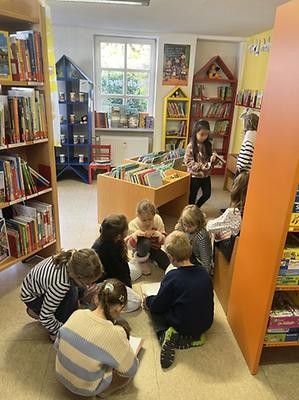 Am 24. Oktober 2025 besuchte die Klasse 1b erstmals gemeinsam die örtliche Bücherei.